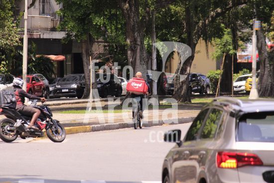 2853346 Entregadores por aplicativo circulando no centro do Rio de Janeiro.