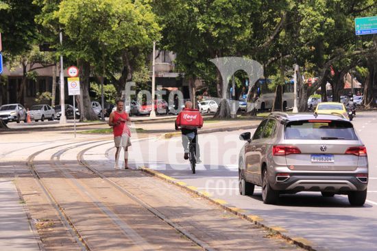 2853342 Entregadores por aplicativo circulando no centro do Rio de Janeiro.