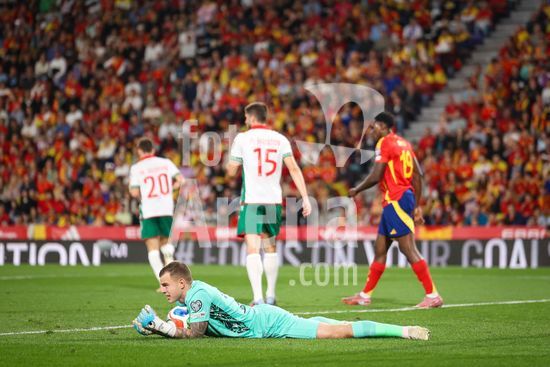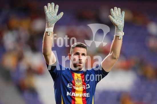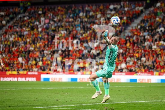 2824293 Unai Simón saudando o público durante Espanha x Bulgária realizada no Estadio José Zorrilla em Valladolid, CL, nesta terça-feira, 14.