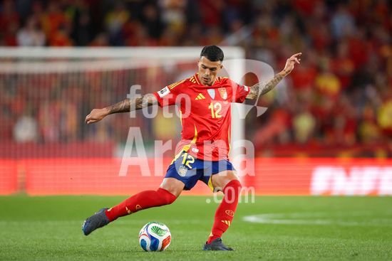 2824286 Pedro Porro em ação durante Espanha x Bulgária realizada no Estadio José Zorrilla em Valladolid, CL, nesta terça-feira, 14.
