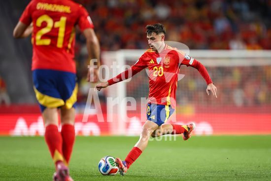 2824294 Pedro Porro em ação durante Espanha x Bulgária realizada no Estadio José Zorrilla em Valladolid, CL, nesta terça-feira, 14.