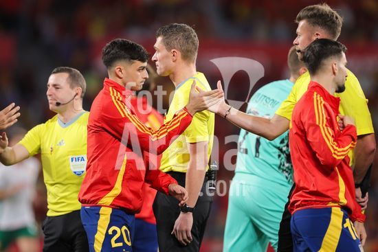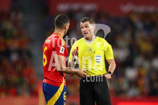 2824349 O árbitro Willy Delajod marca pênalti para a Espanha durante Espanha x Bulgária realizada no Estadio José Zorrilla em Valladolid, CL, nesta terça-feira, 14.