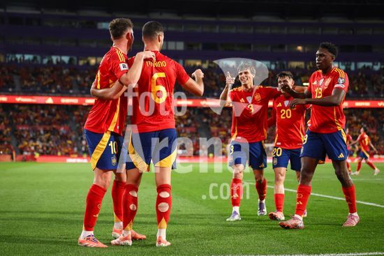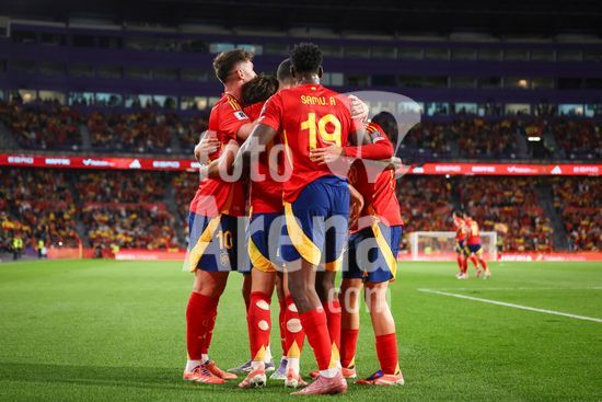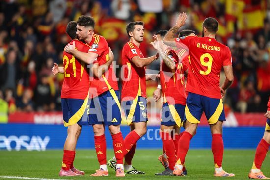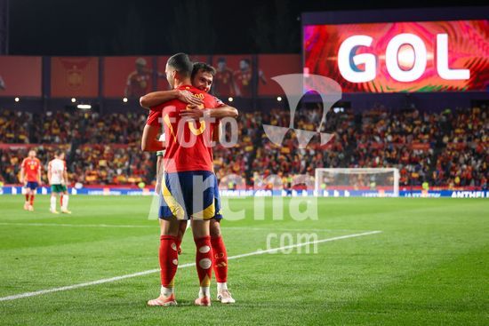 2824350 Seleção espanhola comemora quarto gol durante Espanha x Bulgária realizada no Estadio José Zorrilla em Valladolid, CL, nesta terça-feira, 14.