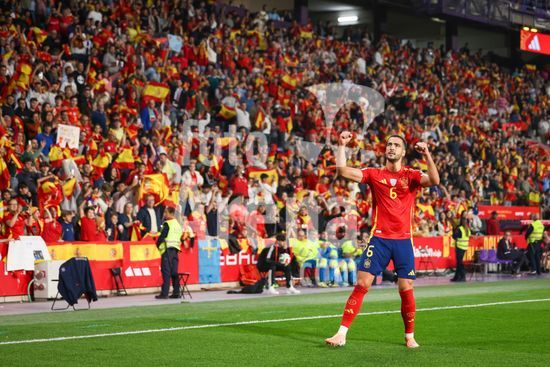 2824345 Mikel Merino comemora seu segundo gol durante Espanha x Bulgária realizada no Estadio José Zorrilla em Valladolid, CL, nesta terça-feira, 14.