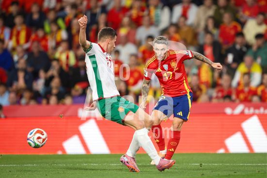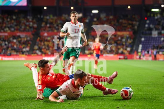 2824321 Alex Baena e Martin Georgiev lutam pela bola durante Espanha x Bulgária realizada no Estadio José Zorrilla em Valladolid, CL, nesta terça-feira, 14.