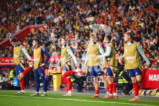2824339 Substitutos aquecendo durante Espanha x Bulgária realizada no Estadio José Zorrilla em Valladolid, CL, nesta terça-feira, 14.