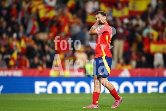 2824327 Mikel Merino comemora o primeiro gol durante Espanha x Bulgária realizada no Estadio José Zorrilla em Valladolid, CL, nesta terça-feira, 14.