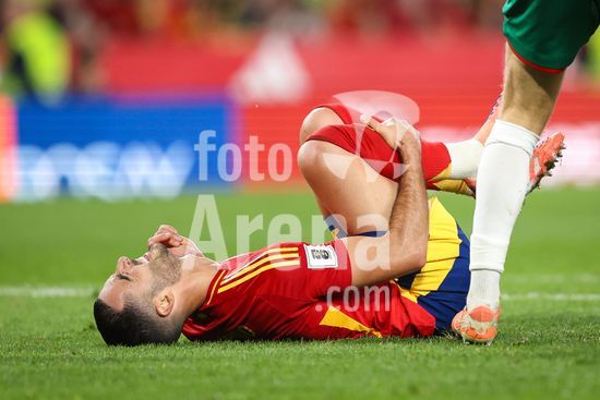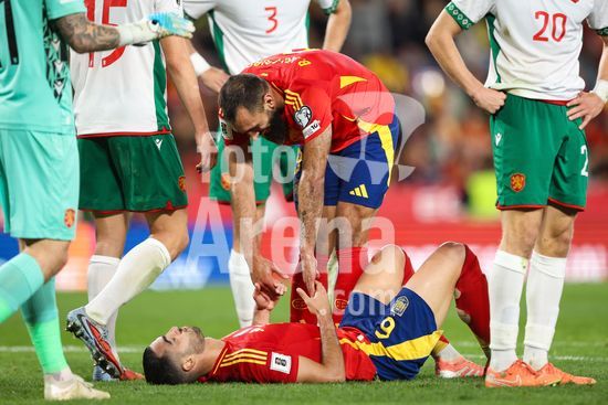 2824362 Mikel Merino no chão após sofrer falta dentro da área durante Espanha x Bulgária realizada no Estadio José Zorrilla em Valladolid, CL, nesta terça-feira, 14.