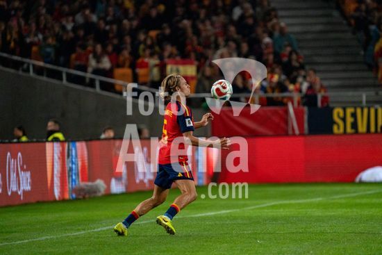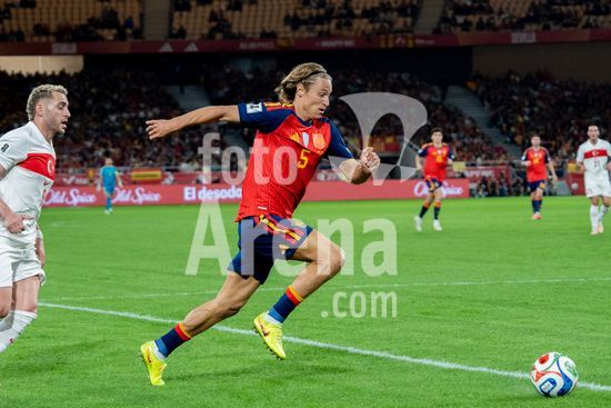 2844775 Pau Cubarsi (Espanha, nº 15) com a bola durante a partida das Eliminatorias da Copa do Mundo da UEFA, Grupo E, entre Espanha e Turquia, no Estadio de la Cartuja, em Sevilha, Espanha. (Andres Lopez Sheridan / SPP)