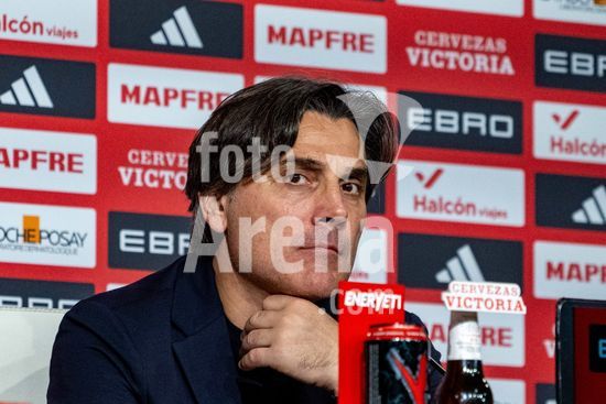 2844752 O tecnico da selecao turca, Vincenzo Montella, demonstrou satisfacao com o resultado durante a coletiva de imprensa apos a partida entre Espanha e Turquia, valida pela fase de grupos das Eliminatorias da Copa do Mundo da UEFA, Grupo E, no Estadio de la Cartuja, em Sevilha, Espanha. (Andres Lopez Sheridan / SPP)