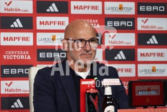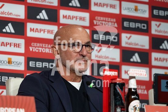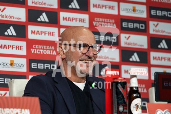 2844756 Luis de la Fuente, treinador da selecao espanhola, durante a conferencia de imprensa apos o jogo das Eliminatorias da Copa do Mundo da UEFA, Grupo E, entre Espanha e Turquia, no Estadio de la Cartuja, em Sevilha, Espanha. (Andres Lopez Sheridan / SPP)
