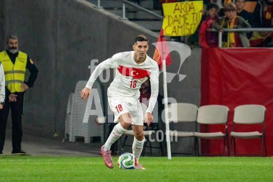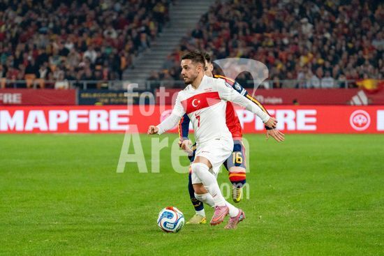 2844725 Orkun Kokcu (Turquia N6) com a bola durante a partida das Eliminatorias da Copa do Mundo da UEFA, Grupo E, entre Espanha e Turquia, no Estadio de la Cartuja, em Sevilha, Espanha. (Andres Lopez Sheridan / SPP)