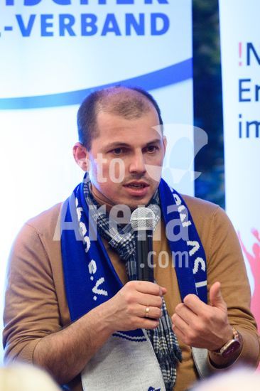 2869083 Munique, Alemanha, 14 de janeiro de 2026: Michael Franke (presidente do FT Gern) durante o evento !NieWieder (Nunca Mais) ? Central, que marca o dia da lembranca no futebol alemao, no Estadio Grunwalder, em Munique, Alemanha. (Sven Beyrich/SPP)