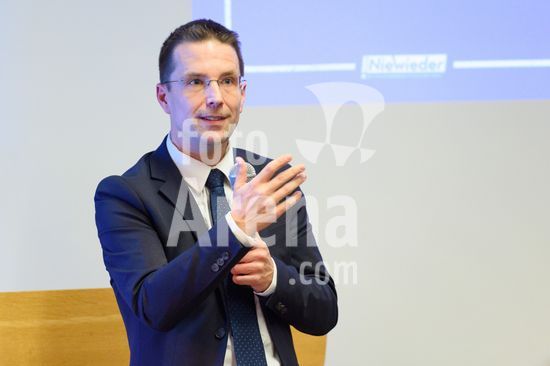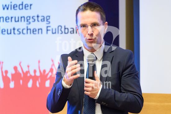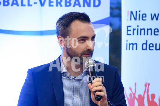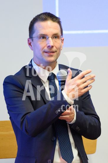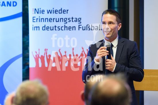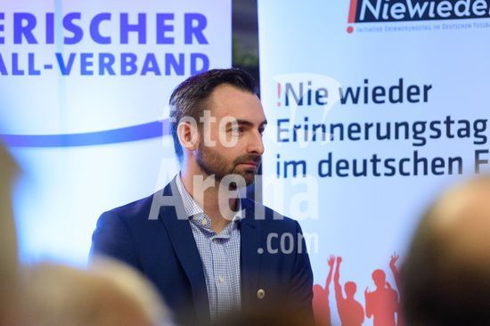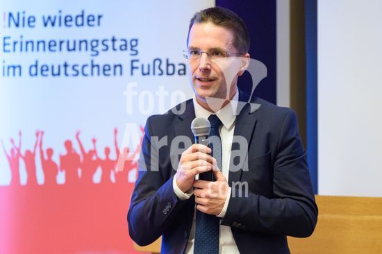 2869103 Munique, Alemanha, 14 de janeiro de 2026: Dr. Christoph Kern (Presidente da Federacao Bavara de Futebol, BFV) durante o evento !NieWieder (Nunca Mais) ? Central, que marca o dia da lembranca no futebol alemao, no Estadio Grunwalder, em Munique, Alemanha. (Sven Beyrich/SPP)