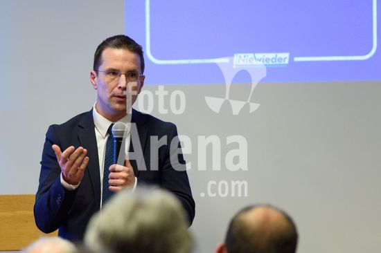 2869101 Munique, Alemanha, 14 de janeiro de 2026: Dr. Christoph Kern (Presidente da Federacao Bavara de Futebol, BFV) durante o evento !NieWieder (Nunca Mais) ? Central, que marca o dia da lembranca no futebol alemao, no Estadio Grunwalder, em Munique, Alemanha. (Sven Beyrich/SPP)