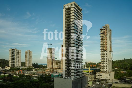 Série fotográfica realizada na cidade de Itajaí, Santa Catarina, retratando o avanço da construção civil e a expansão do mercado imobiliário local. As imagens documentam o processo de verticalização e transformação da paisagem urbana, evidenciando o impacto econômico e social do crescimento acelerado da região. Imagens do Porto de Itajaí servem para dar contexto do território.
