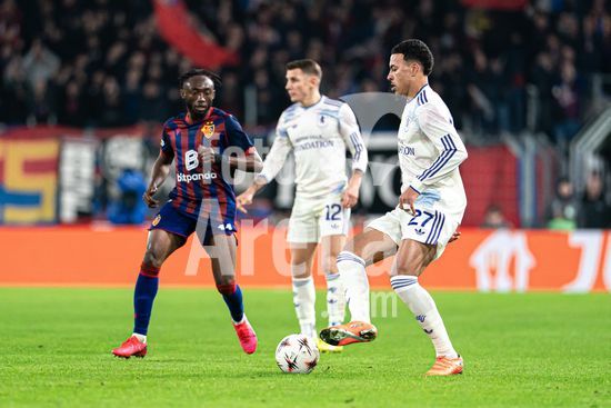 2857968 Koba Koindredi (8 FC Basel 1893), a direita, e Morgan Rogers (27 Aston Villa), a esquerda, em acao durante a partida da Liga Europa da UEFA entre FC Basel 1893 e Aston Villa no St. Jakob-Park, Basileia, Suica. (Priscila Bütler / SPP)