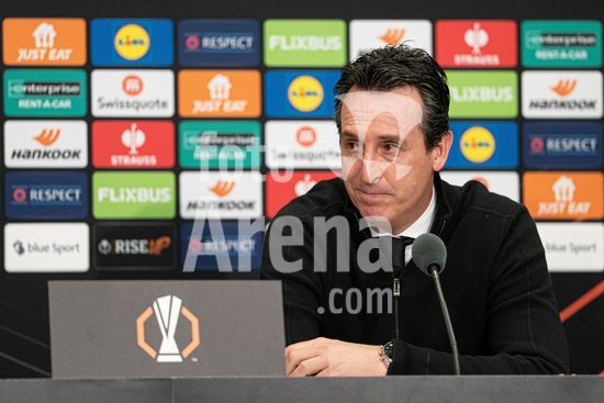 2858165 Unai Emery (treinador do Aston Villa) durante a conferencia de imprensa apos o jogo da Liga Europa da UEFA entre o FC Basel 1893 e o Aston Villa no St. Jakob-Park, em Basileia, Suica. (Priscila Bütler / SPP)