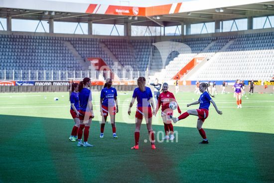 2918908 THUN, BERNA - 4 DE ABRIL: Jogadoras do FC Thun se alinham antes da partida da Superliga Feminina entre FC Thun e FC Rapperswil-Jona, na Stockhorn Arena, em 4 de abril de 2026, em Thun, Berna, Suica. (Livio Baeriswyl / SPP)