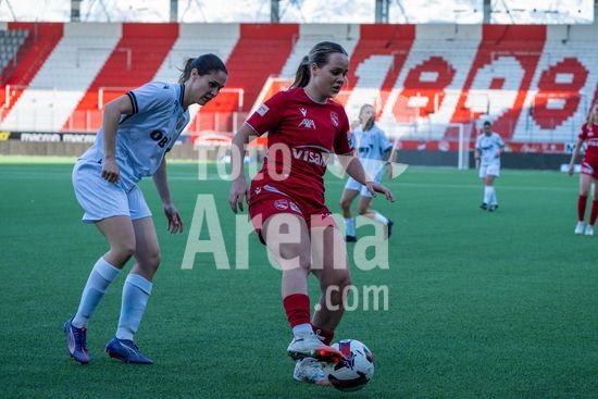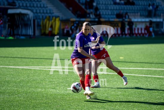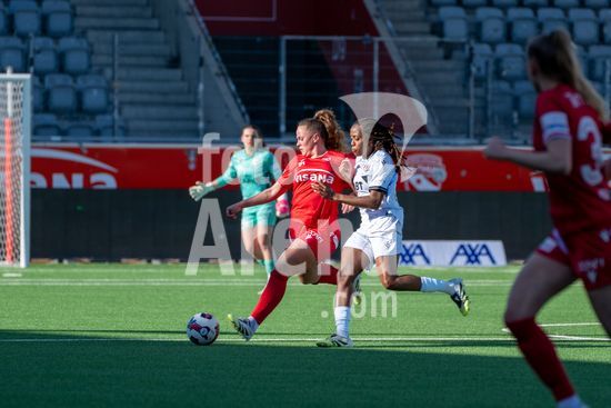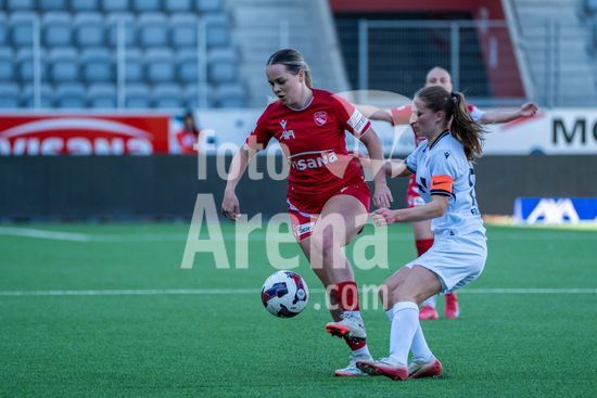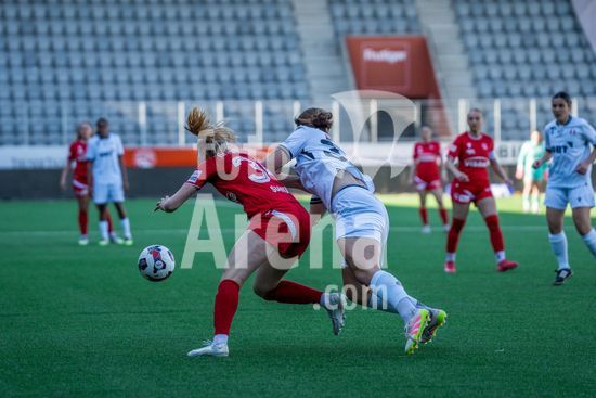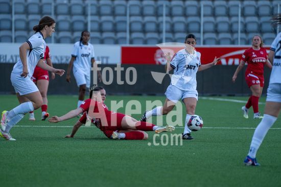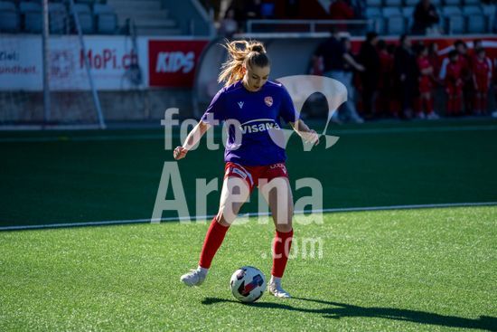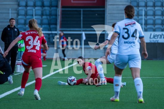 2918912 THUN, BERNA - 4 DE ABRIL: Celine Schmid, do FC Thun, disputa a bola durante a partida da Superliga Feminina entre FC Thun e FC Rapperswil-Jona, na Stockhorn Arena, em 4 de abril de 2026, em Thun, Berna, Suica. (Livio Baeriswyl / SPP)