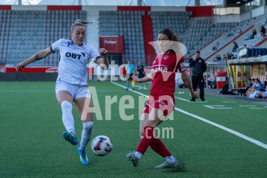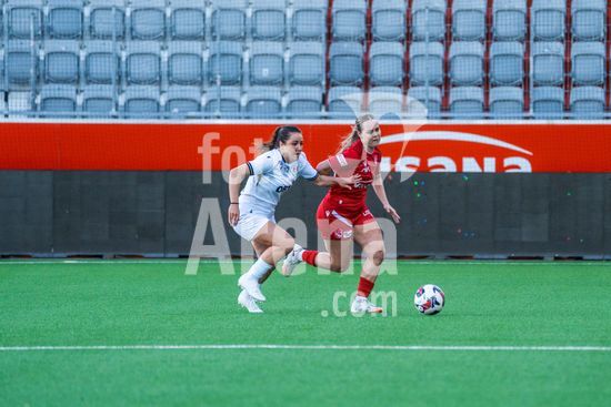 2918945 THUN, BERNA - 4 DE ABRIL: Celine Frey, do FC Thun, disputa a bola durante a partida da Superliga Feminina entre FC Thun e FC Rapperswil-Jona, na Stockhorn Arena, em 4 de abril de 2026, em Thun, Berna, Suica. (Livio Baeriswyl / SPP)
