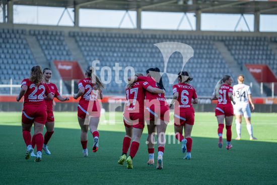 2918913 THUN, BERNA - 4 DE ABRIL: Jogadoras do FC Thun comemoram apos marcarem o primeiro gol, fazendo 1 a 0, durante a partida da Superliga Feminina entre FC Thun e FC Rapperswil-Jona, na Stockhorn Arena, em 4 de abril de 2026, em Thun, Berna, Suica. (Livio Baeriswyl / SPP)