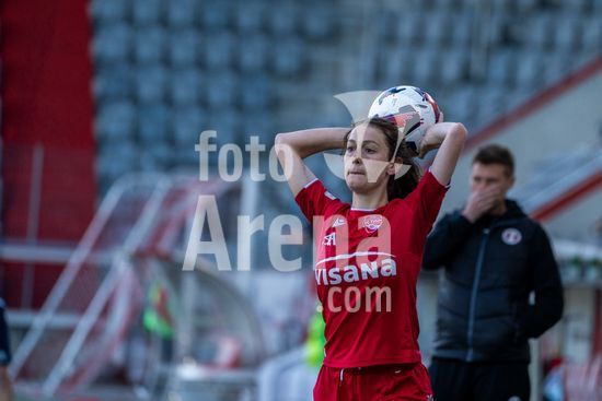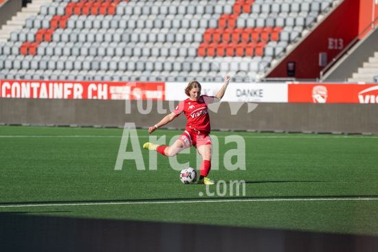 2918936 THUN, BERNA - 4 DE ABRIL: A capita Shenia Schmid, do FC Thun, em acao durante a partida da Superliga Feminina entre FC Thun e FC Rapperswil-Jona, na Stockhorn Arena, em 4 de abril de 2026, em Thun, Berna, Suica. (Livio Baeriswyl / SPP)