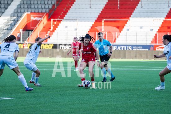 2918947 THUN, BERNA - 4 DE ABRIL: Laura Kott Luzon, do FC Rapperswil-Jona, avanca com a bola durante a partida da Superliga Feminina entre FC Thun e FC Rapperswil-Jona, na Stockhorn Arena, em 4 de abril de 2026, em Thun, Berna, Suica. (Livio Baeriswyl / SPP)