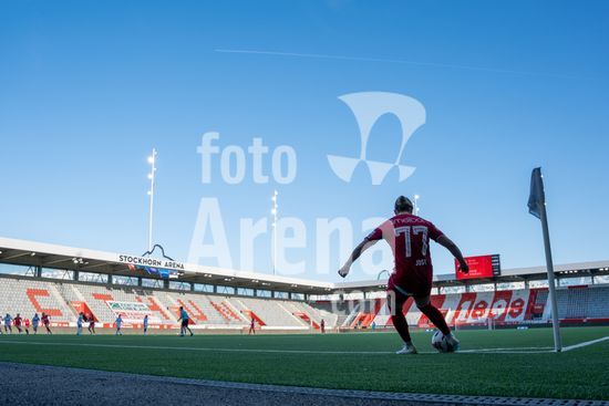 2918950 THUN, BERNA - 4 DE ABRIL: Jael Jost, do FC Thun, cobra um escanteio durante a partida da Superliga Feminina entre FC Thun e FC Rapperswil-Jona, na Stockhorn Arena, em 4 de abril de 2026, em Thun, Berna, Suica. (Livio Baeriswyl / SPP)
