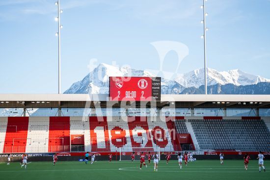 2918952 THUN, BERNA - 4 DE ABRIL: O resultado final da partida e exibido como 2-2 apos o jogo da Superliga Feminina entre FC Thun e FC Rapperswil-Jona na Stockhorn Arena em 4 de abril de 2026 em Thun, Berna, Suica. (Livio Baeriswyl / SPP)