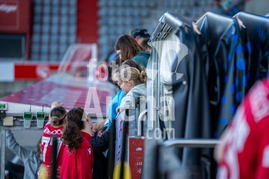 2918956 THUN, BERNA - 4 DE ABRIL: Jogadoras do FC Thun interagem com jovens fas apos a partida da Superliga Feminina entre FC Thun e FC Rapperswil-Jona, na Stockhorn Arena, em 4 de abril de 2026, em Thun, Berna, Suica. (Livio Baeriswyl / SPP)