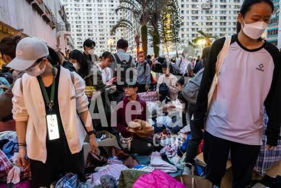 ny271125110412 People look through donated items for residents displaced by the fire at Wang Fuk Court in the Tai Po district of Hong Kong, Nov. 27, 2025. Authorities said flammable netting and foam boards may have fueled the city?s deadliest blaze in nearly 70 years. (Billy H.C. Kwok/The New York Times/Fotoarena)