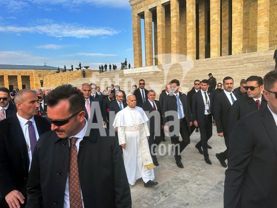 ny271125105911 Pope Leo XIV visits the mausoleum of Mustafa Kemal Ataturk, the founder of modern Turkey and its first president, in Ankara, Turkey on Thursday, Nov. 27, 2025. Leo kicked off the first foreign trip of his papacy on Thursday, arriving in Muslim-majority Turkey for a visit aimed at showcasing his interest in dialogue with other faiths and cooperation with other Christian denominations. (Diego Ibarra Sanchez/The New York Times/Fotoarena)