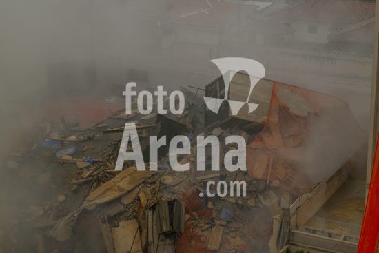 2843600 Vista aerea lateral traseira da implosão do antigo Hotel Urupema .