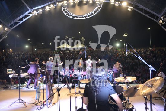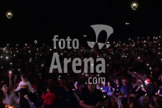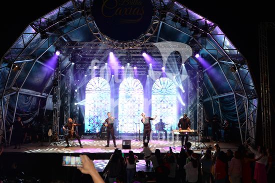 Imagens do show de abertura dos festejos Natalinos em Caxias do Sul, com a apresentação da Família Lima, após a inauguração da iluminação do Brilha Caxias; a chegada do Papai Noel; a inauguração parcial das obras de remodelação da Praça da Estação com o Monumento aos 150 Anos da Imigração Italiana. Caxias do Sul, RS (18).