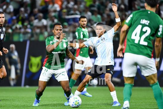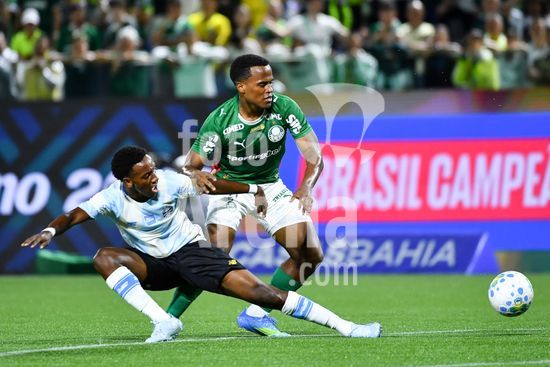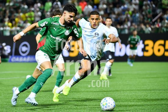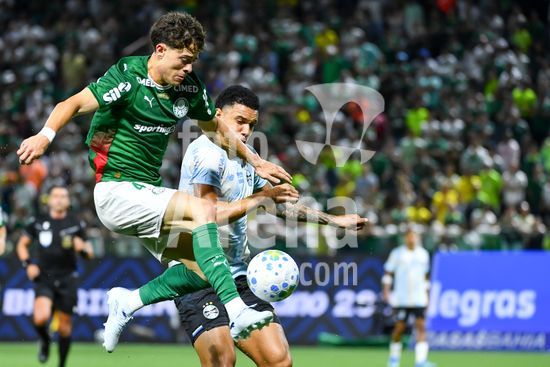2917675 Jhon Arias do Palmeiras e Gabriel Mec do Grêmio disputando a bola, durante partida entre Palmeiras x Grêmio, válida pela nona rodada do Campeonato Brasileiro de Futebol 2026, nesta quinta feira (2), na Arena Crefisa Barueri, em Barueri, SP.