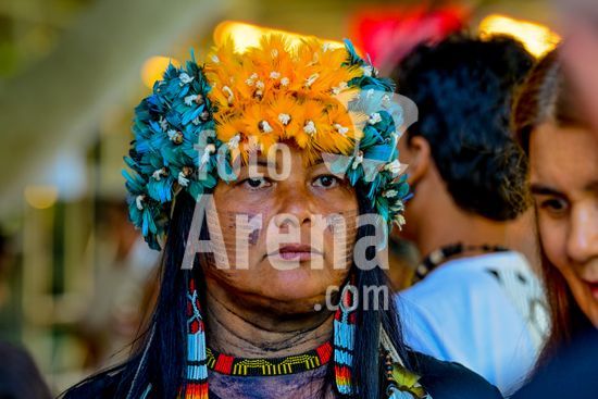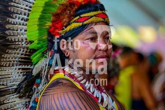 2928258 Feira de Arte Indigena diversas tribos de povos indigenas se reuniram no Parque do Ibirapuera para exposição de artes indigenas colares pulseiras cocar e utensilios . PATAXO / YAWALAPITI