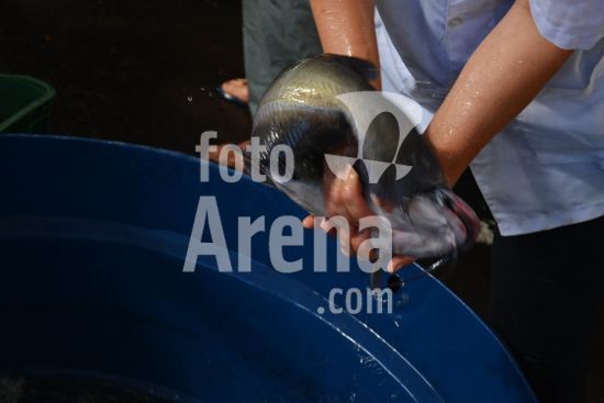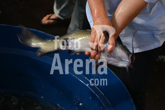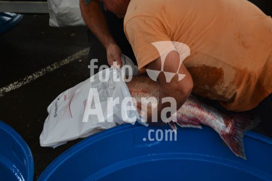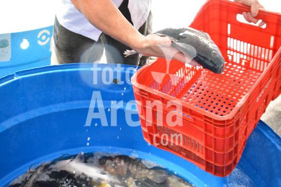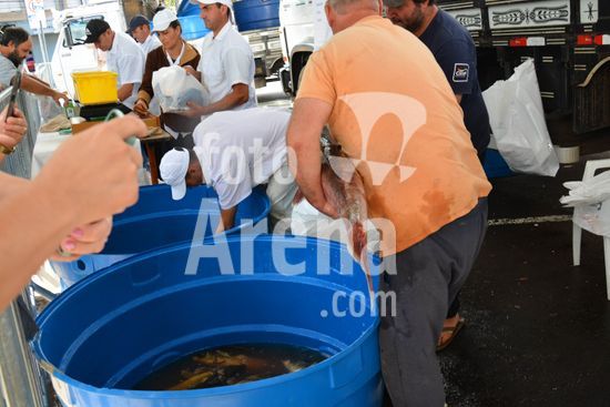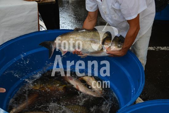 2916831 Imagens da Feira do Peixe Vivo, que vende peixe para o consumo da celebração católica da Semana Santa, localizada na Praça Dante Alighieri, no Centro de Caxias do Sul, em Frente a Catedral de Santa Teresa. Caxias do Sul, RS (01).