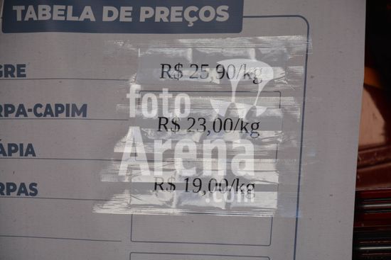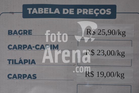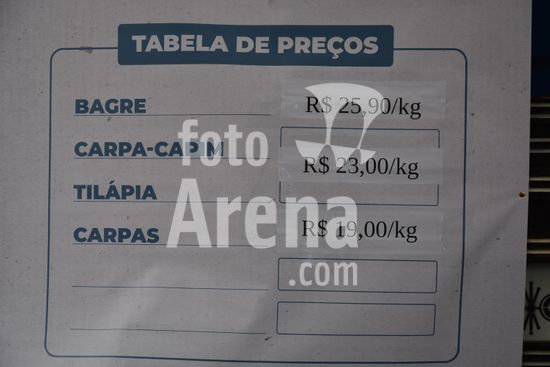 2916808 Imagens da Feira do Peixe Vivo, que vende peixe para o consumo da celebração católica da Semana Santa, localizada na Praça Dante Alighieri, no Centro de Caxias do Sul, em Frente a Catedral de Santa Teresa. Tabela de preços do peixe. Caxias do Sul, RS (01).