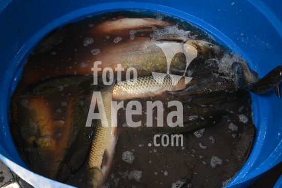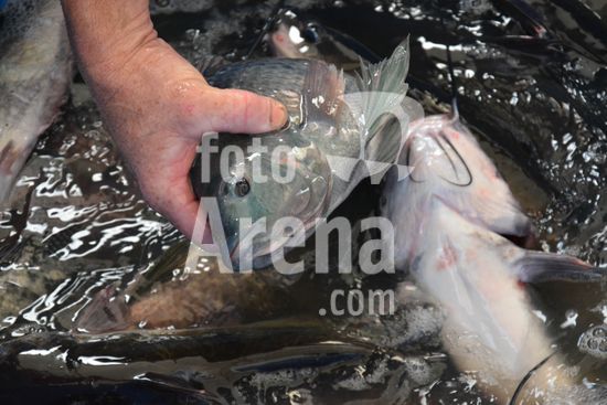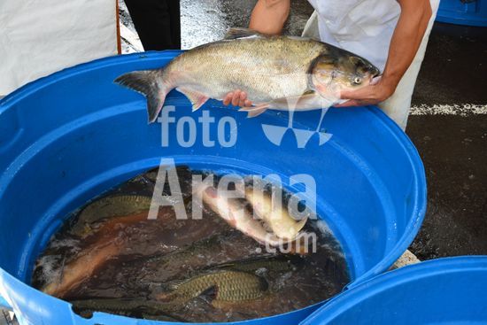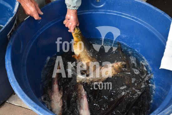 2916835 Imagens da Feira do Peixe Vivo, que vende peixe para o consumo da celebração católica da Semana Santa, localizada na Praça Dante Alighieri, no Centro de Caxias do Sul, em Frente a Catedral de Santa Teresa. Caxias do Sul, RS (01).