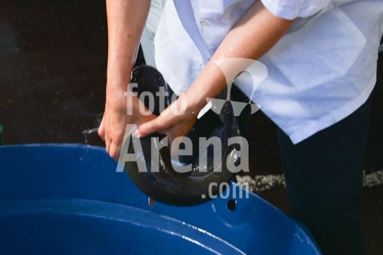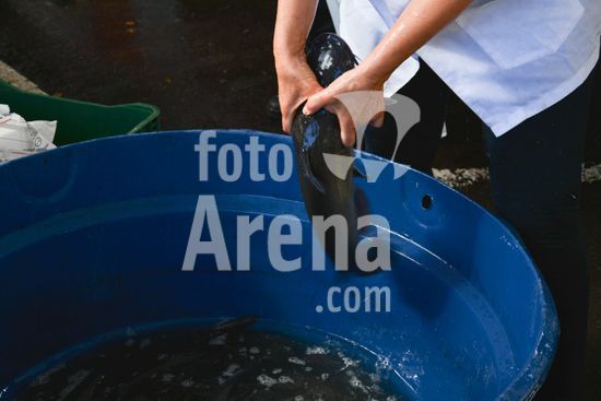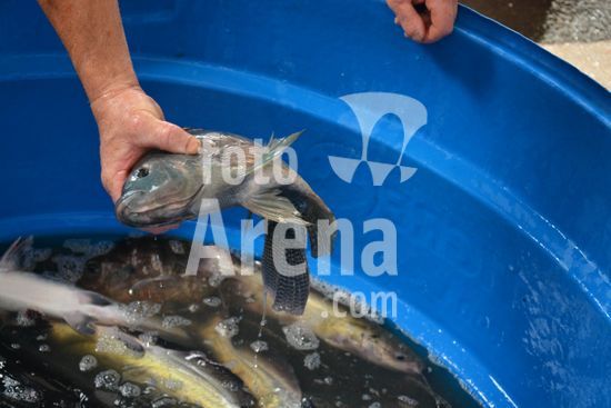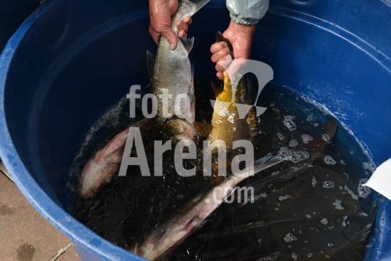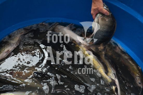 2916823 Imagens da Feira do Peixe Vivo, que vende peixe para o consumo da celebração católica da Semana Santa, localizada na Praça Dante Alighieri, no Centro de Caxias do Sul, em Frente a Catedral de Santa Teresa. Caxias do Sul, RS (01).