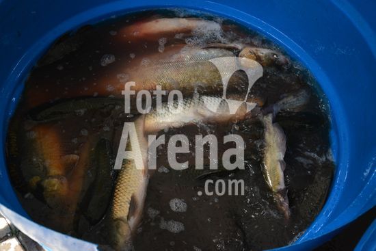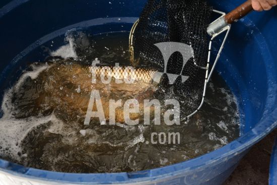 2916817 Imagens da Feira do Peixe Vivo, que vende peixe para o consumo da celebração católica da Semana Santa, localizada na Praça Dante Alighieri, no Centro de Caxias do Sul, em Frente a Catedral de Santa Teresa. Caxias do Sul, RS (01).