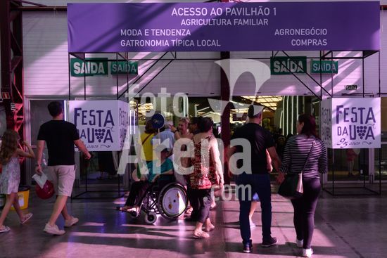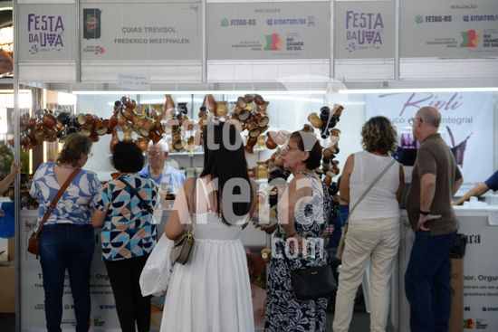 Imagens da movimentação de visitantes na 95ª Festa da Uva, no Parque de Eventos Mário Bernardino Ramos, os Pavilhões da Festa da Uva, nesta segunda-feira, um evento de gastronomia, cultura e tradição italiana-gaúcha, com espetáculos cênicos e shows. A visitação nos pavilhões permite a circulação de animais de estimação com seus responsáveis, desde que sejam adestrados e não provoquem problemas aos demais visitantes. Caxias do Sul, RS, (02).