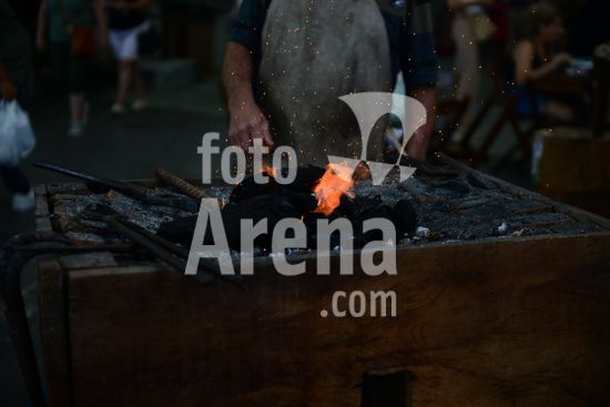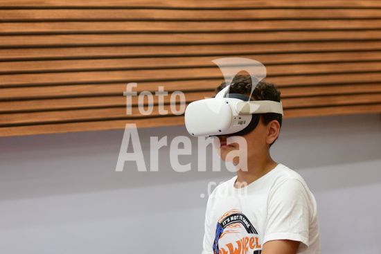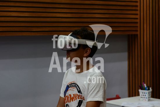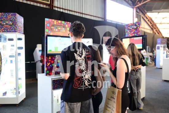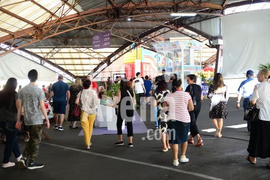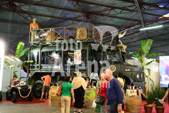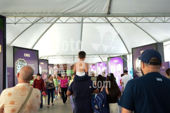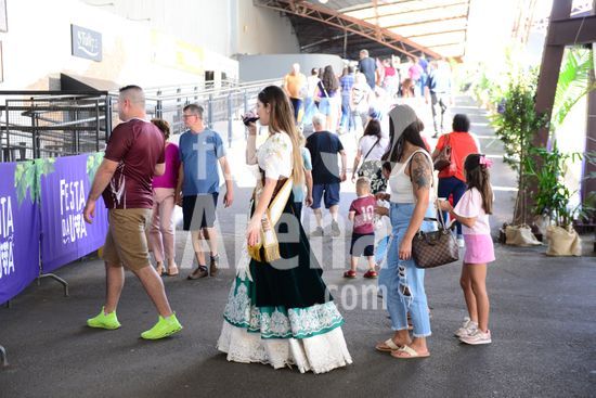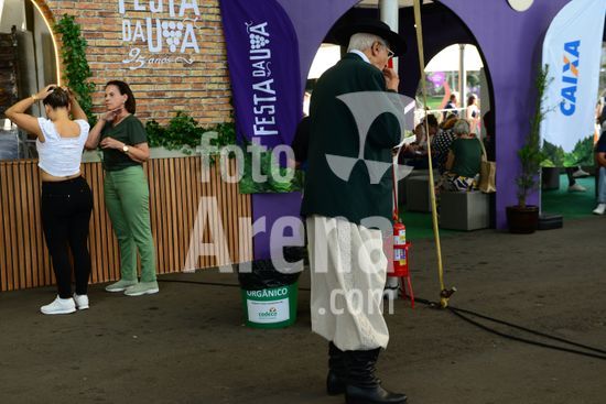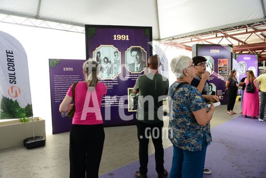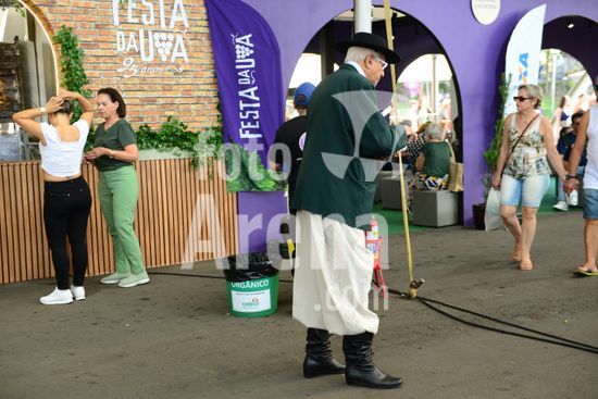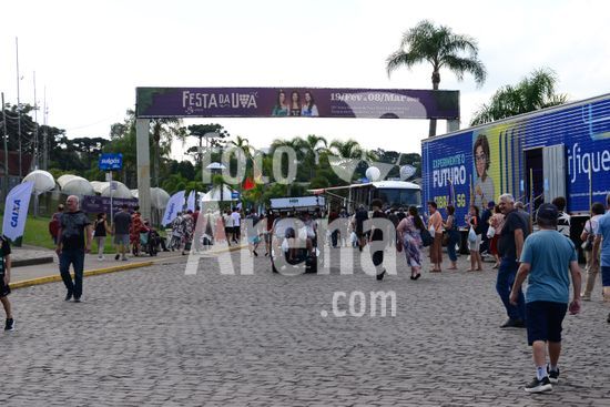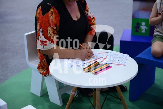 Imagens da movimentação de visitantes na 95ª Festa da Uva, no Parque de Eventos Mário Bernardino Ramos, os Pavilhões da Festa da Uva, na terça-feira, um evento de gastronomia, cultura e tradição italiana-gaúcha, com espetáculos cênicos e shows. Uma senhora, visitante, pintando gravuras em um local de diversão para crianças. Caxias do Sul, RS, (03).