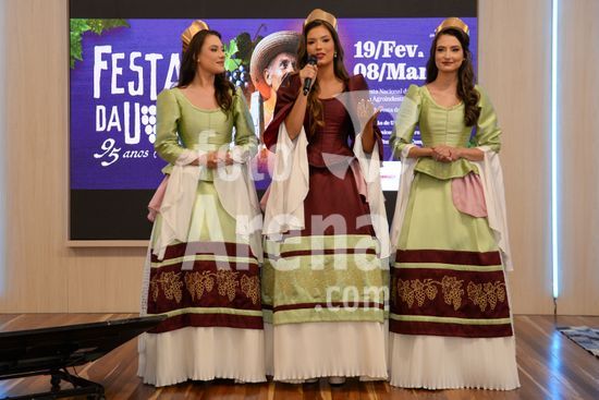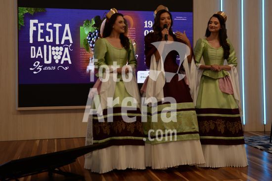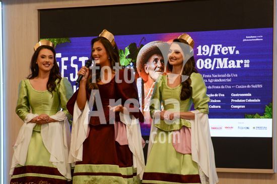 Imagens da reunião/almoço na CIC Caxias, na qual estiveram presentes as Soberanas da Festa da Uva 2026, a rainha e as princesas Elisa D'Mutti, Júlia Scopel e Letícia Comin da Silva, que convidaram os presentes para a edição deste ano, marcada para ocorrer de 19 de fevereiro a 8 de março, nos Pavilhões da Festa da Uva. Caxias do Sul, RS, (28).