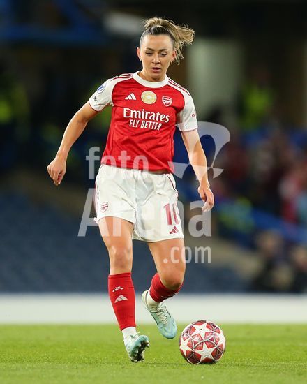 2916725 LONDRES, INGLATERRA - 1 DE ABRIL: Katie McCabe, do Arsenal, com a bola durante a partida de volta das quartas de final da Liga dos Campeoes Feminina da UEFA 2025/26 entre Chelsea e Arsenal, no Stamford Bridge, em 1 de abril de 2026, em Londres, Inglaterra. (Jay Patel/SPP)
