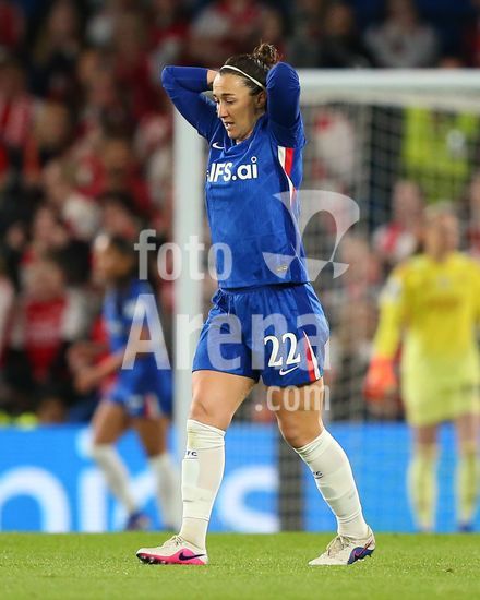 2916740 LONDRES, INGLATERRA - 1 DE ABRIL: Lucy Bronze, do Chelsea, com as maos na cabeca apos uma oportunidade perdida durante o jogo de volta das quartas de final da Liga dos Campeoes Feminina da UEFA 2025/26 entre Chelsea e Arsenal, no Stamford Bridge, em 1 de abril de 2026, em Londres, Inglaterra. (Jay Patel/SPP)