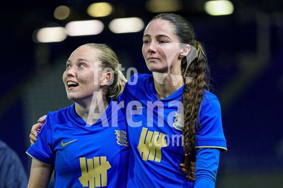 2916798 BIRMINGHAM, INGLATERRA - 1 de abril: Jogadoras do Birmingham City comemoram o apito final da partida de futebol da Barclays Women's Super League 2 entre Birmingham City e Sunderland no St Andrews, em 1 de abril, em Birmingham, Inglaterra. (Natalie Mincher/SPP)