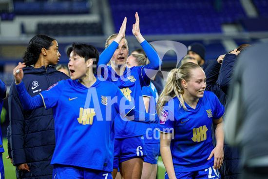 2916795 BIRMINGHAM, INGLATERRA - 1 de abril: Jogadoras do Birmingham City comemoram o apito final da partida de futebol da Barclays Women's Super League 2 entre Birmingham City e Sunderland no St Andrews, em 1 de abril, em Birmingham, Inglaterra. (Natalie Mincher/SPP)