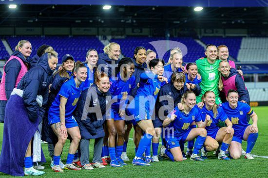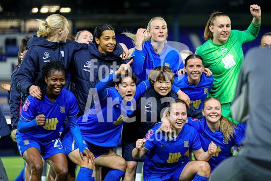 2916797 BIRMINGHAM, INGLATERRA - 1 de abril: Jogadoras do Birmingham City comemoram o apito final da partida de futebol da Barclays Women's Super League 2 entre Birmingham City e Sunderland no St Andrews, em 1 de abril, em Birmingham, Inglaterra. (Natalie Mincher/SPP)